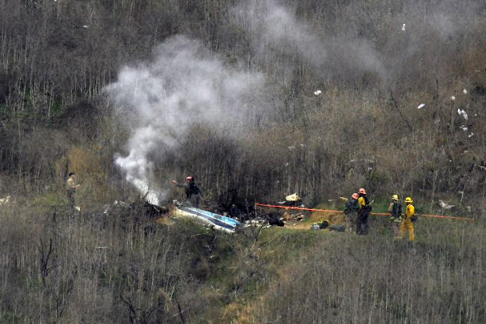 지난해 1월 코비 브라이언트의 헬기 추락 사고 당시 현장 모습. 연합뉴스