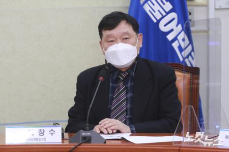 이창수 한국대리운전협동조합 이사장이 23일 국회에서 열린 대리운전보험제도 개선 성과 보고회에서 인사말을 하고 있다.