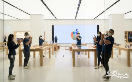 24일 서울 영등포구 여의도 애플 스토어가 언론에 사전 공개되고 있다. 국내 두번째 애플 스토어인 ‘애플 여의도’는 IFC몰 내 위치하며 오는 26일 오픈한다.