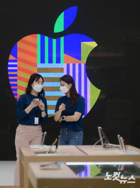 24일 서울 영등포구 여의도 애플 스토어가 언론에 사전 공개되고 있다. 국내 두번째 애플 스토어인 ‘애플 여의도’는 IFC몰 내 위치하며 오는 26일 오픈한다.