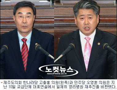 제주도의회 한나라당 원내대표인 고충홍 의원은 "투자개방형 병원으로 명칭을 바꾼다고 반대가 찬성으로 돌아서지 않는다"고 질타했다.