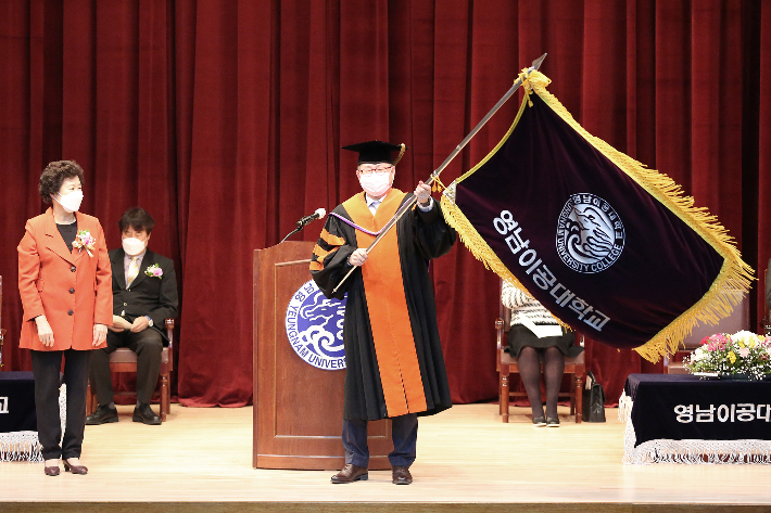 취임식은 코로나19 확산 방지를 위해 참석 인원을 최소화하고, 발열 체크, 마스크 착용 등 방역수칙과 위생을 철저히 준수한 가운데 진행됐으며, 영남이공대학교 공식 유튜브 채널 '와플'을 통해 생중계됐다.