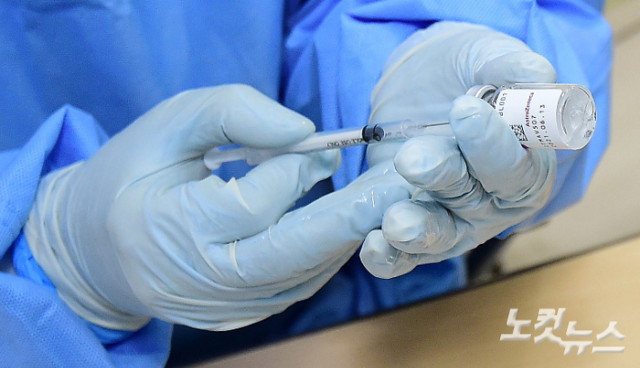 3일 서울 중구보건소에서 의료진이 아스트라제네카(AZ) 백신을 주사기에 담고 있다. 박종민 기자