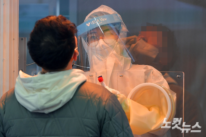서울역 임시선별검사소에서 의료진이 검체를 채취하고 있다. 박종민 기자
