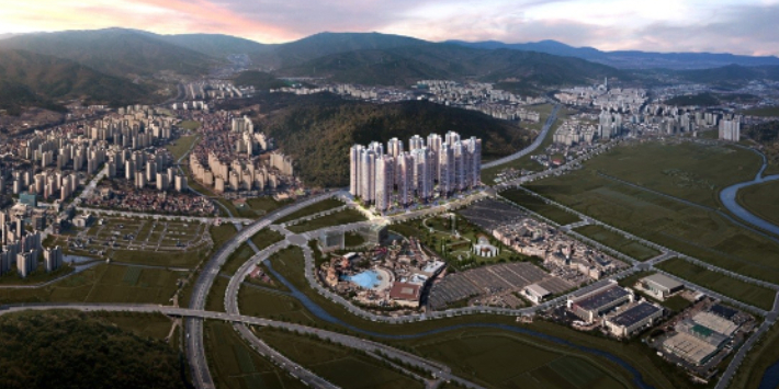 9일 두산건설 등에 따르면 더스카이시티는 김해 신문동 일대에 지하 4층~지상 49층, 15개 동으로 이뤄지며 아파트 3764가구(전용 64~163㎡), 오피스텔 629실(전용 23~59㎡) 총 4393가구가 조성된다.