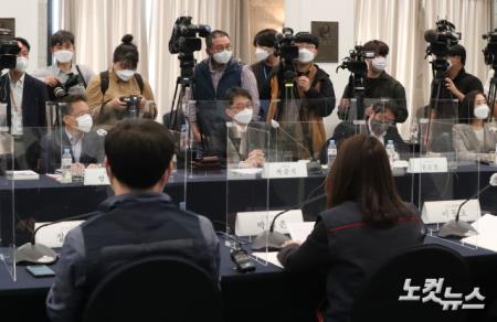 20일 오후 서울 중구 한국프레스센터에서 최저임금을 심의, 의결하는 기구인 최저임금위원회가 내년도 최저임금 결정을 위해 올해 첫 전원회의를 열고 있다. 회의에 참석한 박준식 최저임금위원장(가운데)이 근로자위원의 발언을 듣고 있다.