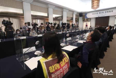 20일 오후 서울 중구 한국프레스센터에서 최저임금을 심의, 의결하는 기구인 최저임금위원회가 내년도 최저임금 결정을 위해 올해 첫 전원회의를 열고 있다.