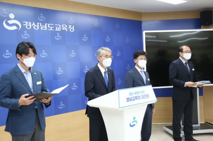 박종훈 경남교육감이 22일 경남교육청 브리핑룸에서 하동 집단하숙형 서당 문제해결을 위한 종합대책을 발표하고 있다. 경남교육청 제공