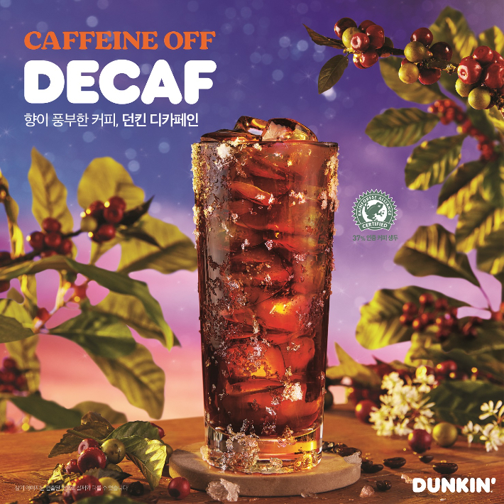 던킨의 '던킨 디카페인 커피'는 카페인 함량을 96.9% 제거했으며, 디카페인임에도 더욱 풍성한 맛과 향을 가진 것이 특징이다. 카페인에 민감한 고객들은 물론, 늦은 오후나 밤에도 카페인 걱정 없이 커피를 즐기고 싶은 고객들을 위해 출시한 제품이다.