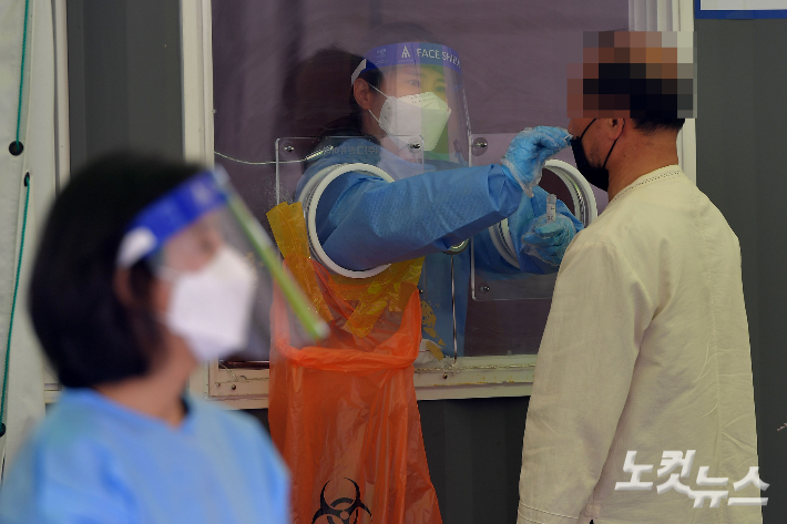 임시선별검사소에서 시민이 검사를 받고 있다. 박종민 기자