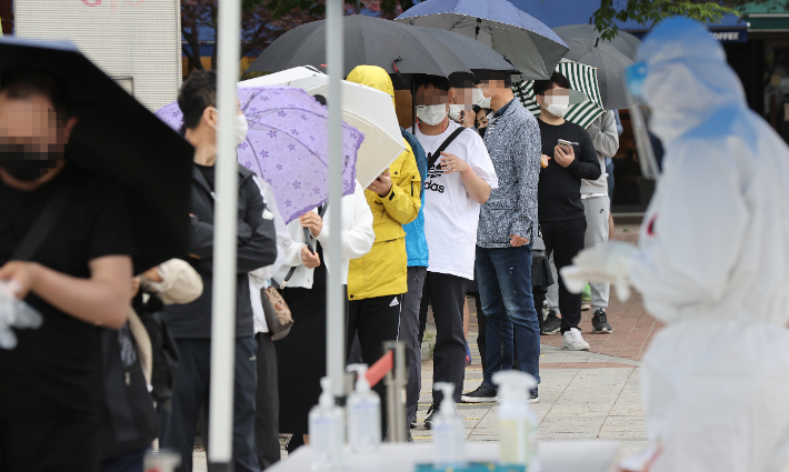 20일 오전 서울 구로역 광장에 마련된 임시선별검사소에서 외국인 및 시민 등이 검체 검사를 위해 대기하고 있다. 연합뉴스