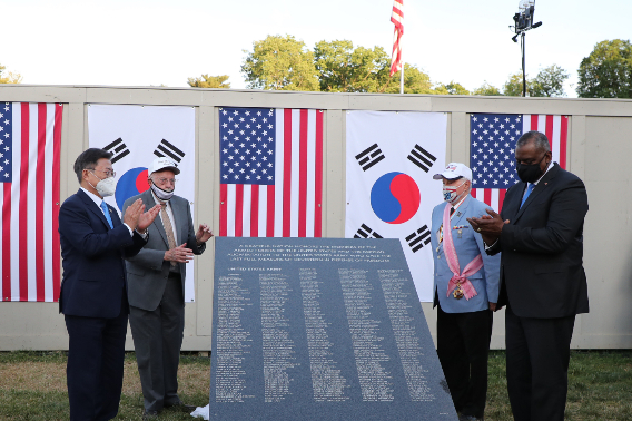 문 대통령은 이날 행사에서 "알지도 못하는 나라, 만난 적도 없는 국민을 지키기 위해 참전한 미국의 아들과 딸들이었다.위대한 건국의 후예들이었다"고 연설을 시작했다.