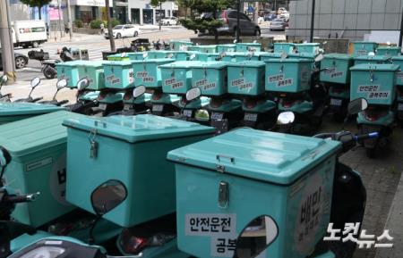 16일 서울 강남구 배민 라이더스 남부센터에 오토바이들이 주차되어 있다.