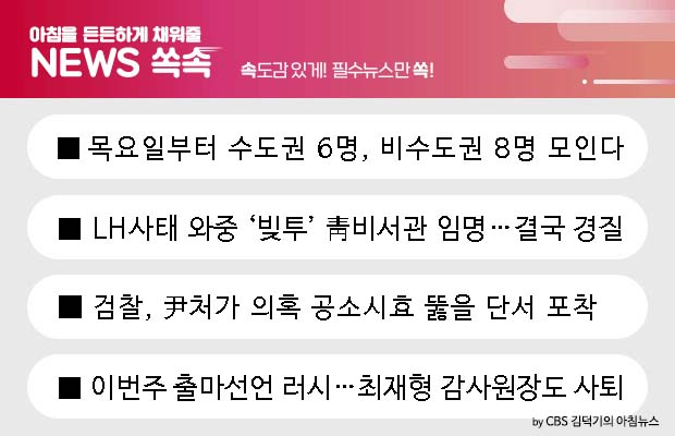 4. 이번주 출마선언 러시…최재형 감사원장도 사퇴이번주 여야의 유력 대선 주자들의 출마선언이 줄줄이 예정되면서 슈퍼위크가 예상됩니다. 야권의 대선 잠룡으로 알려진 최재형 감사원장은 오늘(28일) 원장직에서 사퇴할 전망입니다. 윤석열 전 검찰총장은 내일(29일)매헌 윤봉길 의사 기념관에서 기자회견을 열고 '앞으로 걸어갈 길'을 설명할 계획입니다. 경선 연기론 논쟁을 매듭지은 민주당은 오늘부터 예비후보 접수를 시작하는데, 이재명 경기도지사가 30일 후보 등록을 한 후 다음 날인 7월 1일 대선 출마를 공식 선언할 예정입니다.