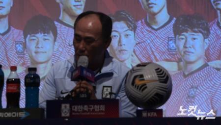 김학범 대한민국 올림픽 축구대표팀 감독이 30일 오후 서울 종로구 광화문 KT스퀘어 드림홀에서 열린 ‘2020 도쿄올림픽 최종 명단 발표 기자회견’에서 답변을 하고 있다.
