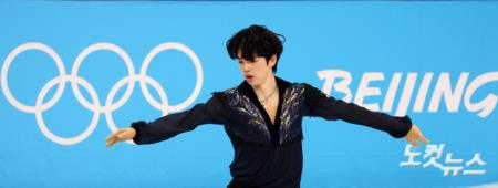 차준환이 10일 중국 베이징 캐피털 인도어 스타디움에서 열린 2022 베이징동계올림픽 피겨스케이팅 남자 싱글 프리스케이팅 경기에서 연기를 펼치고 있다.
