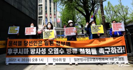 '윤 당선인은 日정부에 후쿠시마 방사성 오염수 방류 철회 촉구하라'