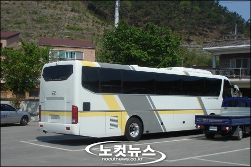 김해 봉하마을 주차장에 주차된 72무 31XX호 대형버스(사진).