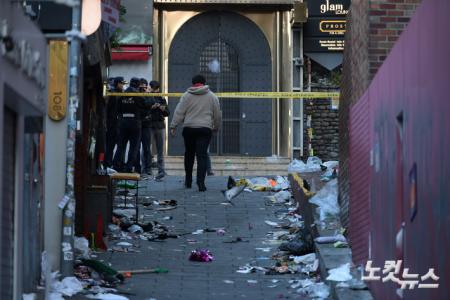 29일 오후 서울 용산구 이태원동 일대에 핼러윈을 맞이해 인파가 몰리면서 대규모 인명사고가 발생했다. 30일 경찰이 현장을 통제하고 있다. 소방당국은 오전 4시 브리핑을 통해 사망자는 146명, 부상자는 150명이라고 밝혔다.