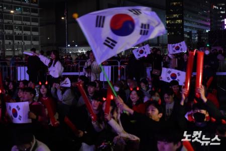 2022 카타르월드컵 대한민국과 우루과이 경기를 앞둔 24일 저녁 서울 종로구 광화문광장에서 시민들이 응원전을 펼치고 있다.