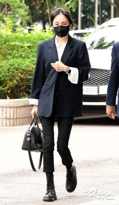 필로폰 투약 혐의를 받고 있는 방송인 서민재가 18일 오전 서울 마포구 서부지법에서 열린 영장실질심사에 출석하고 있다.