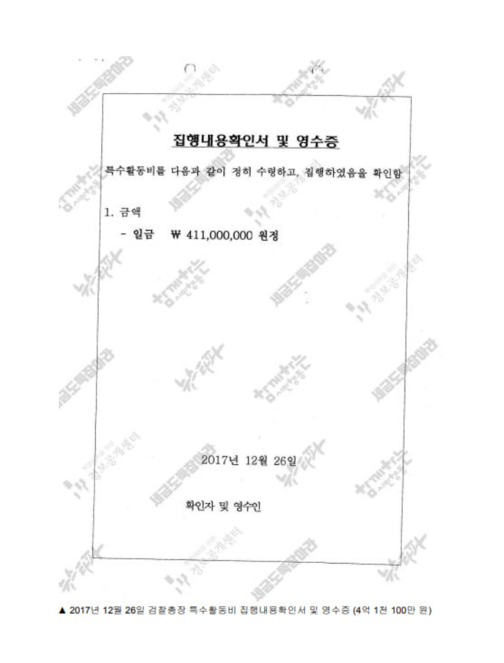 ◆ 하승수> 이제 기획재정부 지침이나 감사원 지침이 있는데요. 거기에 따르면 현금으로 쓰는 경우에도 영수증과 그다음에 어디에 쓰는지를 집행내용확인서라고 해서 두 가지 문서를 남기게 돼 있습니다.
