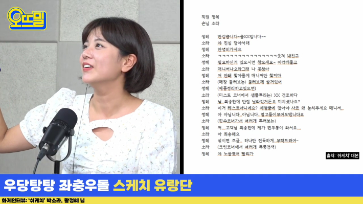 ◆ 황정혜> 사실은 그냥 여자 사람 둘이 하는 채널이다 해서 엄청 간단하게 만들었거든요. 여자 사람들이 하니까 '쉬'를 붙인 다음에 스케치 코미디에서 '스케치'를 그냥 결합시켜서.