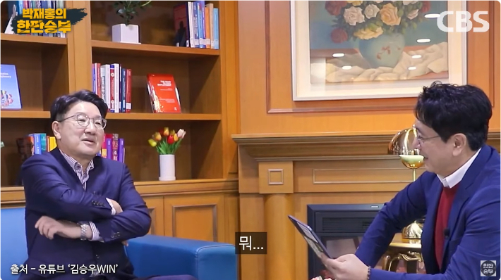 '김승우WIN' 유튜브 채널 캡쳐'김승우WIN' 유튜브 채널 캡쳐◇ 박재홍> 인터뷰 장소도 의원 방에 가거나 혹은 되게 자유롭게 하시는 것 같아요.