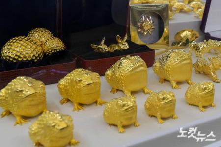 달러 약세와 함께 미국 연방준비제도의 통화긴축 기조 중단에 따른 기대감에 금값이 온스당 2010달러를 넘어서며 반년 만에 최고치를 경신했다. 미국 증권가에서는 금값이 조만간 2500달러를 넘어 사상 최고치를 기록할 것이란 전망을 내놓고 있다. 사진은 30일 오후 서울 종로구 한국금거래소에 진열된 금제품.