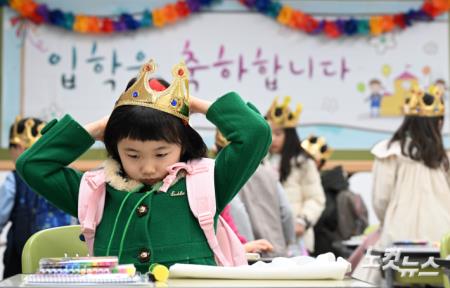 4일 서울 영등포구 문래초등학교에서 입학식을 마친 1학년 4반 신입생들이 교실에서 자리를 찾아 앉고 있다.