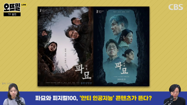 ◇ 채선아> 주제를 좀 바꾸면 영화 <파묘>가 1,100만 관객을 넘으면서 지금 흥행을 이끌어가고 있는데 무속을 다룬 작품이잖아요. 이런 파묘의 흥행을 두고 인공 지능 열풍에 대한 피로감이나 반발 심리가 작용한 거라는 분석이 있더라고요.