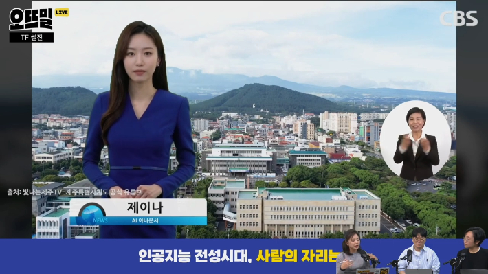 ◇ 채선아> 어떡하면 좋아요. 그런데 저는 남 걱정할 게 아닌 게 제 코가 석자거든요. 지금 제주에 인공지능 아나운서가 나왔다고 해서 한창 뉴스가 나왔거든요. 그래서 걱정이 되는 한편으로는 '이런 기술을 활용해서 내가 하는 일을 좀 더 수월하게 혹은 잘 운영해 볼 수도 있지 않을까'라는 생각이 들더라고요.