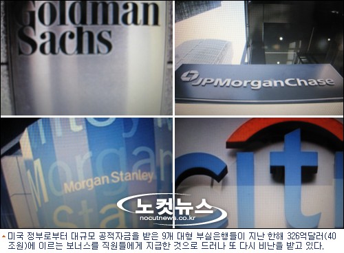 부실자산구제계획(TARP.Troubled Asset Relief Program)에 따라 미국 정부로부터 총 1천750억달러의 구제금융을 받은 9개 대형은행들이 지난해 직원들에게 326억달러(약 40조원)의 보너스를 지급한 것으로 드러났기 때문이다.