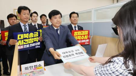 '대북송금 관련 검찰조작 특검법' 의안과에 제출하는 이성윤 의원