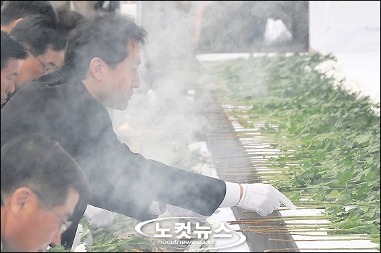故 김대중(金大中.85) 전 대통령의 서거 이틀째를 맞는 19일 오전 시청 앞 서울광장에 마련된 정부 공식 분향소에서 오세훈 서울시장이 헌화하고 있다.