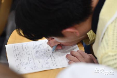 578돌 한글날을 하루 앞둔 8일 오전 서울 서대문구 연세대학교 한국어학당에서 열린 제30회 외국인 한글백일장에서 외국인 학생들이 주제에 따라 글을 쓰고 있다.