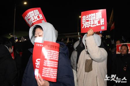 윤석열 대통령 탄핵소추안이 본회의에 상정된 7일 서울 여의도 국회 앞에서 시민들이 탄핵가결을 촉구하고 있다.