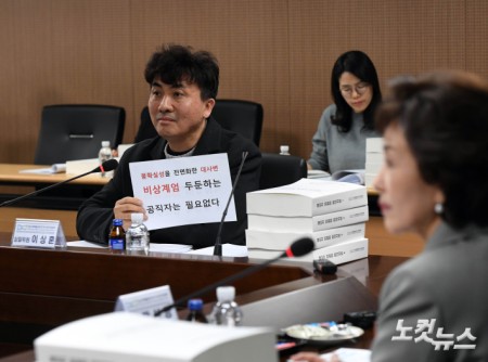 진실·화해를위한과거사정리위원회(진실화해위원회) 이상훈 상임위원이 17일 오후 서울 중구 진실화해위원회 전체회의에 참석해 손피켓을 들어보이고 있다.