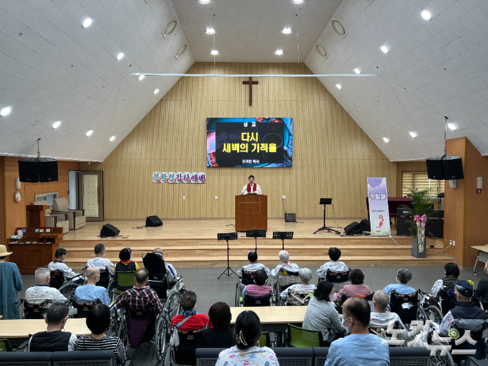 ◆ 전귀현>자원봉사자가 꼭 필요합니다. 저희가 환자들을 이송하는 데 있어서 손이 굉장히 부족합니다. 그리고 원내 교회이기 때문에 성도들 이 저희들은 사실 없습니다. 그래서 보호자분들 그다음에 요양보호사 선생님들 간호사 선생님들이 다 이렇게 환자들을 이송해서 오시는데 이송하는 봉사자들도 필요하고 찬양으로 영광 누릴 수 있는 찬양대 봉사하실 분들도 필요하고 또 많은 부분에서 봉사자들의 손길이 참 많이 필요합니다.