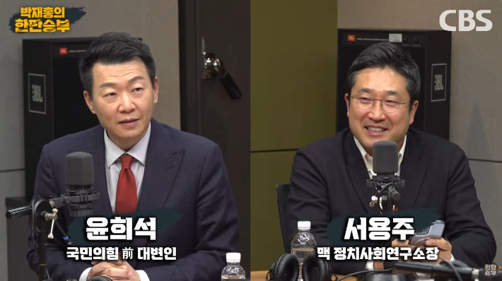 ◆ 박성태> 윤희석 대변인 역시 국민의힘의 여러 인사 중에 가장 합리적이에요. 지금 다 차마 저 말을 못 하거든요. 제일 합리적이에요. 차마 못 하는데 뭐 그래서 공천을 못 받은 것도 있지만, 어쨌든 제일 합리적이다.