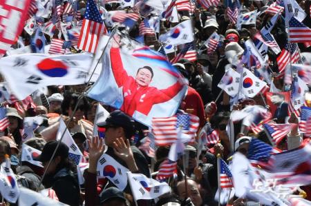 윤석열 대통령에 대한 탄핵심판 선고가 임박한 주말인 15일 서울 종로구 세종대로 일대에서 윤 대통령 탄핵을 반대하는 집회가 열리고 있다.