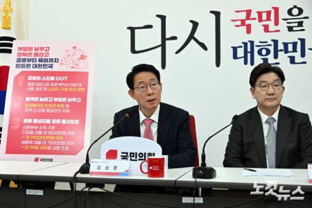 국민의힘 김상훈 정책위의장이 23일 서울 여의도 국회에서 열린 '부담은 낮추고 행복은 올리고 결혼부터 육아까지 든든한 대한민국' 공약 발표에 발언을 하고 있다.