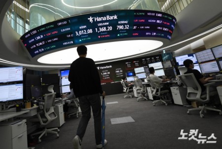 코스피가 20일 장중 3000포인트를 돌파했다. 코스피 지수가 장중 3000선에 오른 건 코로나19 팬데믹 기간이었던 2022년 1월 3일(장중 3010.77) 이후 3년 5개월여 만이다. 이날 코스피는 전장보다 0.29% 오른 2986.52에 출발해 장 초반 2972선까지 떨어졌다가 오전 10시 45분쯤 장중 3000.46포인트를 찍었다. 전장보다 0.76% 상승하면서다. 중동 위기감 고조와 미 연준의 신중론 등이 지수 상승을 제한했지만, 개인과 외국인들의 최근 매수세가 상승세를 견인했다. 사진은 이날 서울 중구 하나은행 본점 딜링룸 모습.