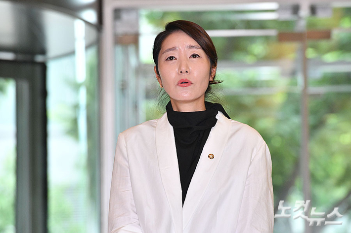 강선우 여성가족부 장관 후보자가 26일 오후 서울 종로구 이마빌딩에 마련된 인사청문회 사무실로 출근하며 소감을 밝히고 있다.
