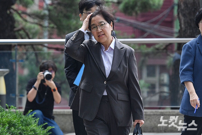 정은경 보건복지부 장관 후보자가 30일 오전 서울 중구 T타워에 마련된 인사청문회 준비 사무실로 출근하고 있다.