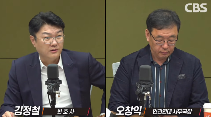 ◇ 김현정> 알겠습니다. 여러분 한 45분 정도의 긴 토론 오늘 마련했는데요. 곰곰이 좀 두 분의 의견을 생각해 보시면서 입장들을 정리해 보시는 건 어떨까 싶습니다. 인권위원대 오창익 사무국장 그리고 김정철 변호사, 개혁신당 최고위원이기도 하시죠. 두 분과 함께한 오늘 토론 두 분 고생 많으셨습니다. 고맙습니다.