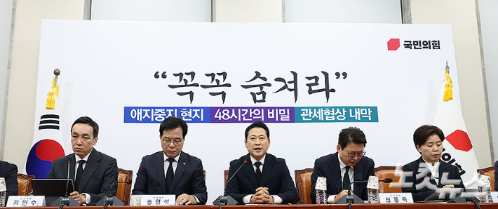 국민의힘 장동혁 대표는 "민중기 특별검사·김현지 대통령실 제1부속실장·봉욱 민정수석을 반드시 국정감사장에 세우겠다"고 밝혔다. 이날 상복 차림으로 나타난 장 대표는 "국민의힘은 이번 국정감사를 통해 정치권력의 폭주, 행정권력의 은폐, 사법권력의 남용을 철저히 파헤치겠다"며 이같이 말했다.