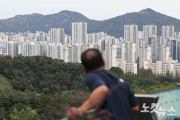 정부가 발표한 초강력 대책 여파로 당분간 서울 부동산 시장은 숨 고르기에 들어갈 것으로 전망되는 가운데 15일 서울 마포구 하늘공원에서 바라본 아파트 모습.