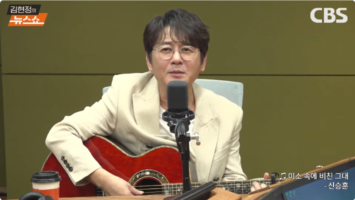 ◆ 신승훈> 뉴스쇼 시청자 여러분, 청취자 여러분, 신승훈이었고요. 오랜만에 음악 들고 나왔습니다. 오늘은 말을 많이 하고 물론 노래도 많이 했지만 계속 노래하는 모습, 너 너무 오래간만이구나 그래서 좀 죄송하긴 한데 계속 음악하는 모습 계속 보여드릴게요. 그리고 언젠가 또 제 음악이 또 여러분에게 또 좋은 추억이 된다면 그것만 한 거 없을 것 같습니다. 오늘 출연하게 돼서 너무 좋았고요. 다음에 또 기회 되신다면 다시 한번 섭외해 주시면 그때는 피아노를 들고 오겠습니다. 뭘 박수를 치세요, 피아노 여기 있는데. 내가 피아노를 그 무거운 걸 왜 들고 와요? 기타만 들고 오지. 여기 있는데.
