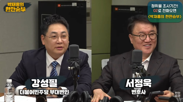◇ 박재홍> CBS 박재홍 한판승부 매주 목요일 정치 평론계의 최강 승부사 네 분을 모시고 펼치는 정치 토론 승부사들을 시작하겠습니다. 먼저 강성필 더불어민주당 부대변인 어서 오세요.